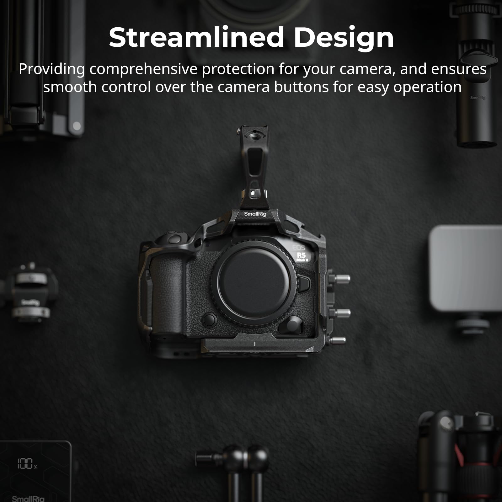- Diseño Optimizado: El kit de carcasa para cámara SMALLRIG R5 Mark II 4976 adopta un diseño de envoltura de una sola pieza optimizado, que brinda protección integral para su cámara y garantiza un control suave sobre los botones de la cámara para una operación sencilla.