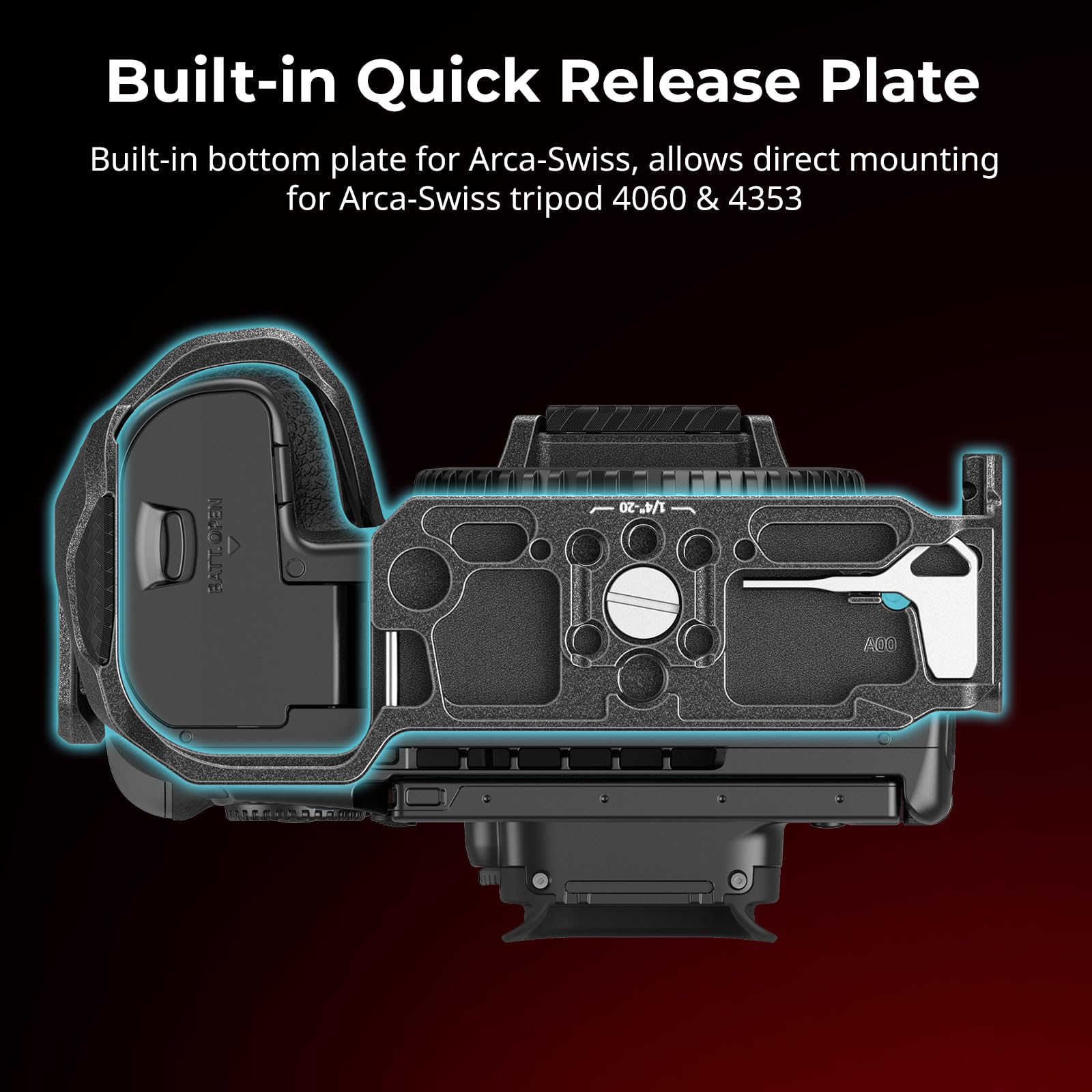 - Placa de Liberación Rápida Incorporada: Placa inferior incorporada para Arca-Swiss, permite el montaje directo para el trípode Arca-Swiss 4060 y 4353. Es compatible con los estabilizadores RS 2 / RSC 2 / RS 3 / RS 3 Pro / RS 4 / RS 4 Pro para DJI, y puede cambiar rápidamente entre escenas con estabilizador, cámara en mano y trípode.