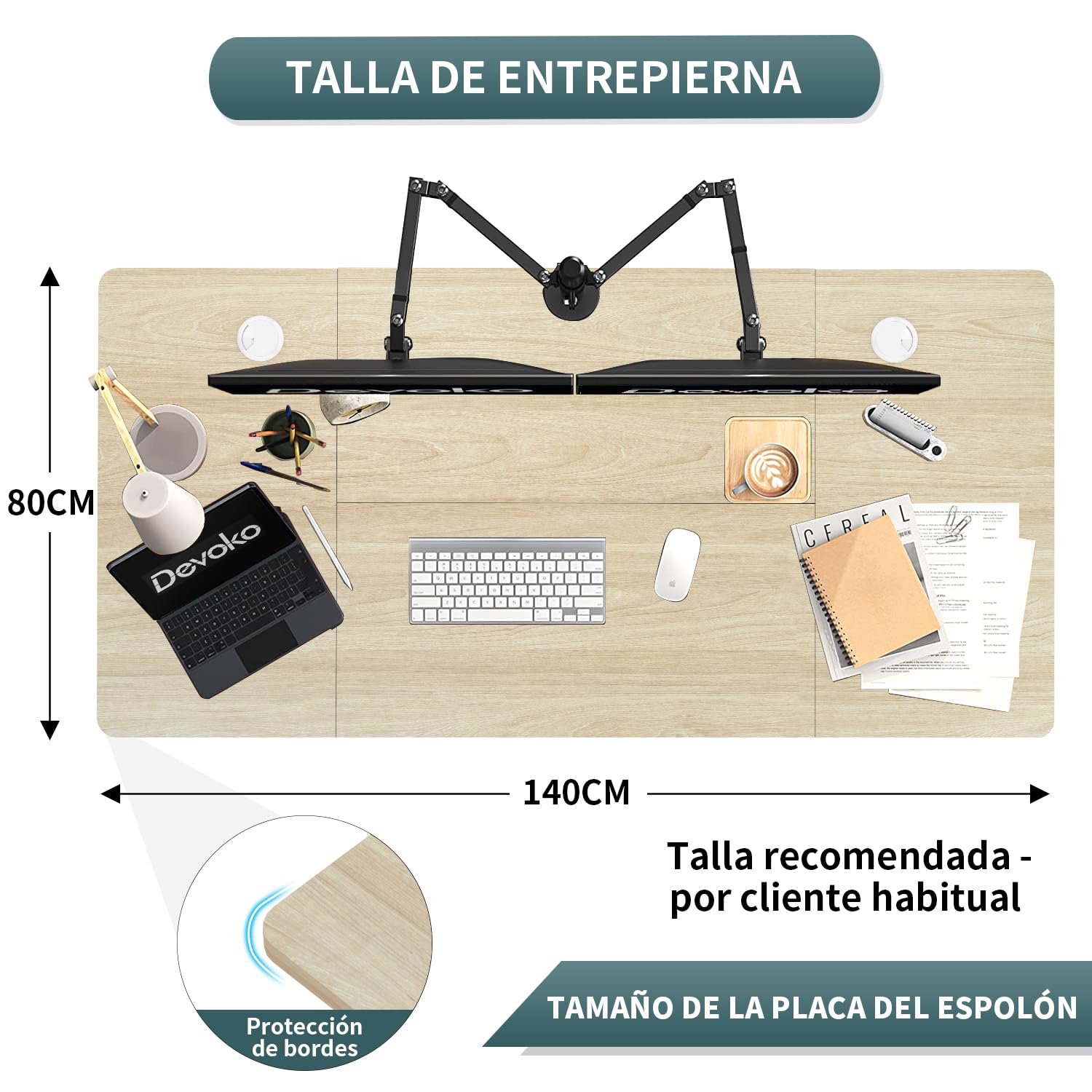 Devoko 140x80cm Escritorio Elevable Eléctrico de Carga Tipo A, Escritorio para Computadora Ajustable en Altura con Bandeja de Gestión de Cables y Memoria de 3 Funciones