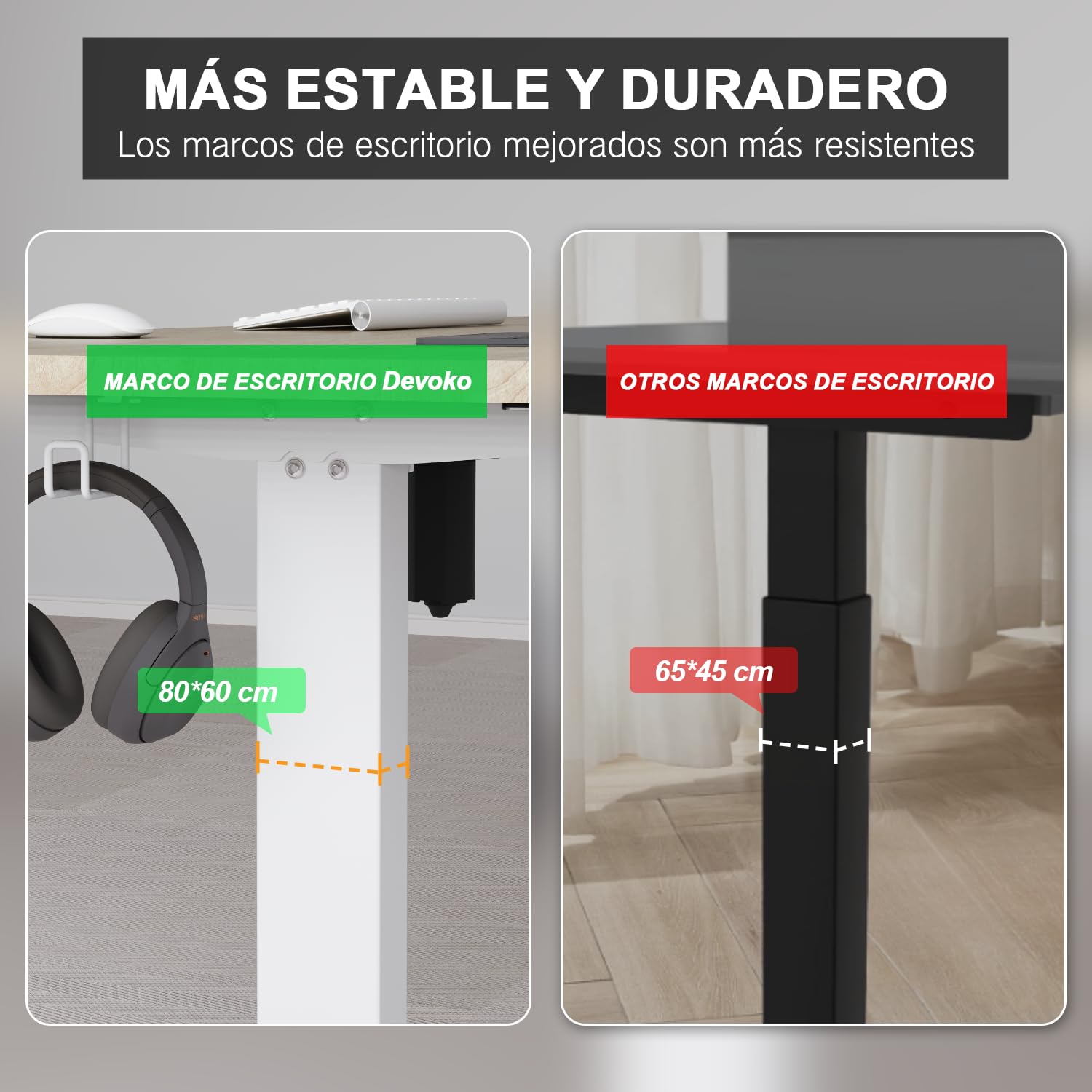 - 【Materia Resistente y Duradera】Devoko Escritorio Regulable está hecho de acero SPCC con tratamiento anticorrosión en la superficie, el tamaño de la pata de la mesa es de 80*50mm, la pata extra grande garantiza la capacidad de carga de hasta 80KG.Las ruedas universales y los pies ajustables son intercambiables, puede elegir mover o oficina estacionaria de la manera que desee.