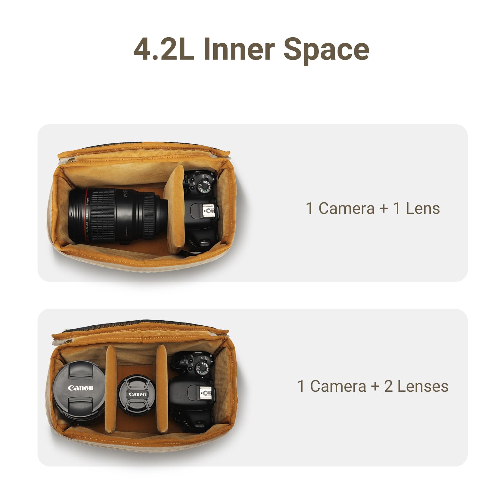 • 📸 Com Bolsa de Câmera RemovĂvel: A mochila inclui uma bolsa interna separada para câmera com 3 divisores ajustáveis, acomodando uma câmera e dois objetivos. A bolsa Ă© destacável, permitindo que a mochila seja usada como um modelo comum quando necessário.